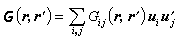 是个并矢,称为并矢格林函数。它的分量Gij(r,r┡)的第一个下标i和第一组宗量r 是场的分量标号和场点坐标;第二个下标i和第二组宗量r┡是源矩的下标和源点的坐标。