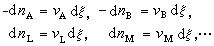 vAA+vBB+…─→vLL+vM M+… (5)发生时,各物种的数量变化dni要服从计量系数之间的比例关系,即