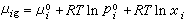由于在平衡系统中μi=μig,所以对比式(15)及式(18)得出