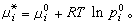 μ孂是在温度T及1个大气压时第i组元纯气体的化学势。若在同温度时,此纯液体的蒸气压是E孂,则按照喇乌耳定律,有