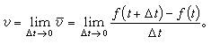 在一般常见的情形,当Δt很小,相应的尌就很接近于时刻t的瞬时速度,而且一般说来,Δt愈小,尌就愈接近于该时刻的瞬时速度。这说明,时刻t的瞬时速度可以表现为路程变化量与时间变化量之比当Δt趋于零(而始终不等于零)时的极限: