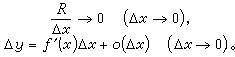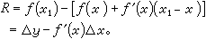)。这在分析上意味着在点x的小邻域内,函数值y=ƒ(x)是可以用切线上相应点的纵坐标值来近似的。而且在 x充分小的邻域内,近似误差R与Δx=x1-x相比是微不足道的。事实上