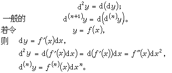 可以归纳地定义。一阶微分(仍然作为x的一个函数)的微分,即称为原来函数的二阶微分,记为