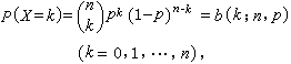 是从n个对象中任意选取k个的组合数,则称X 的分布为二项分布,记作B(n,p)。它的命名来源于b(k;n,p)恰好是[(1-p)+p]n的二项式展开的第k+1项。