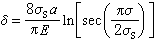 (1)应变判据 认为裂纹的顶端张开位移(crack opening displacement或简写为COD)达到临界值 (δc)时,裂纹失稳扩展,材料断裂。对于薄板双向受拉时的Ⅰ型穿透裂纹,可以导出以下关系: