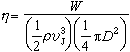 式中Sr为斯特劳哈尔数,Sr≈0.2。卡门涡旋声的总功率可由下式计算: