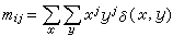,求和在物体的区域范围内进行。对于二值图像f(x,y)=1,f 的各阶矩能提供物体像元的空间分布信息。通过物体质心并且惯性最小的直线为主轴,用它也可表征物体的形状。