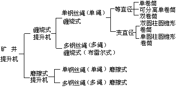 联系矿井井下和地面的工作机械。用钢丝绳带动容器在井筒中升降,完成运输任务。按工作方式分类如下: