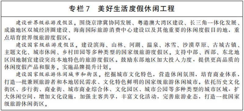 (三)优化城乡旅游休闲空间。推动更多城市将旅游休闲作为城市基本功能,充分考虑游客和当地居民的旅游休闲需要,科学设计布局旅游休闲街区,合理规划建设环城市休闲度假带,推进绿道、骑行道、游憩道、郊野公园等建设,提升游客体验,为城乡居民“微度假”、“微旅游”创造条件。