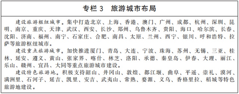 (二)优化旅游城市和旅游目的地布局。建设一批旅游枢纽城市,逐步完善综合交通服务功能,提升对区域旅游的辐射带动作用。支持桂林等地建设世界级旅游城市,打造一批重点旅游城市、特色旅游地。