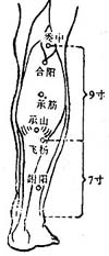 让患者取俯卧位躺下,施术者立于其身侧,用拇指按揉其“承山穴”,该穴位于腓肠肌(俗称“小腿肚”)两肌腹分开的下端凹陷处,见附图。按揉的力度须适当,一般以患者能够忍受为佳。如两侧腰部均疼痛,则两腿承山穴一并按揉,同时嘱患者轻轻地活动腰部,3~5分钟后,腰部疼痛便可缓解。再在患者腰部的压痛点施以轻揉慢擦等手法,助其疏通经络、运行气血。最后,让患者取侧卧位,患侧在上,上面的腿屈膝屈,下面的腿伸直,术者右手曲肘,用肘部按在患者的臀部,左手扶住患者肩部,右肘向其腹部一侧按压,左手将其肩向背侧推,作相反方向的扳动,此时,一般可听到患者腰部发出“咯咯”的声音,然后轻轻摇动患者,使其放松,结束操作。一般的腰痛施术1~2次即可缓解。当然,若病情严重,就医方便,还是最好去医院请教大夫。另外,施术者在操作时须十分小心,要用巧力,不可用蛮劲,以免引起进一步的损伤。
