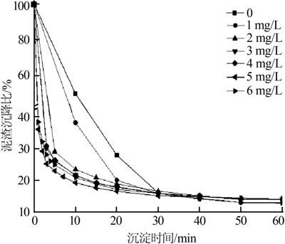 ÓÉͼ 2¿É¼û£¬ÔÚPAMͶ¼ÓÁ¿½ÏСʱ£¬Ëæ×ÅPAMͶ¼ÓÁ¿µÄÌá¸ß£¬ÄàÔüµÄ³Á½µÐÔÄÜÌá¸ß£¬´ïµ½Ïàͬ³Á½µ±ÈËùÐèʱ¼äËõ¶Ì¡£µ±PAMͶ¼ÓÁ¿´óÓÚ3 mg/Lºó£¬ÄàÔüµÄ³Á½µÐÔÄܱ仯½ÏС¡£µ±³Áµíʱ¼ä´óÓÚ30 minºó£¬ÄàÔüµÄ³Á½µ±ÈÏà²î²»´ó¡£