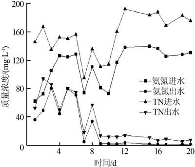 ÊÔÑéÖÐËùÓõĽÓÖÖÎÛÄàÈ¡×ÔÌ©´ïÎÛË®´¦Àí³§£¬ÎÛÄà³Ê»ÒºÚÉ«£¬ÆØÆø48hºó£¬ÎÛÄàÑÕÉ«×ªÎª×ØºÖÉ«£¬¿ªÊ¼Ïò·´Ó¦Æ÷¼ÓÈëÊÔÑéÓÃË®¡£SBR·´Ó¦Æ÷Æô¶¯Ñ±»¯ÆÚ¼ä£¬Í¨¹ý¿ØÖÆÅÅË®±È£¬µ÷½Ú·´Ó¦Æ÷ÄÚÎÛȾÎïµÄŨ¶È£¬²¢Öð²½½«ÅÅË®±ÈÌáÉýÖÁ1¡Ã2¡£Á¬Ðø¼à²âÿ¸öÔËÐÐÖÜÆÚ½øË®ºó£¬·´Ó¦Æ÷ÄÚÎÛȾÎïŨ¶È±ä»¯¡£¼à²â½á¹ûÏÔʾ£º¾¹ý20dµÄÆô¶¯Ñ±»¯£¬TN¡¢°±µªÈ¥³ýÂÊ¿ÉÎȶ¨´ïµ½95%ÒÔÉÏ¡£Æô¶¯Ñ±»¯ÆÚ¼ä£¬·´Ó¦Æ÷ÄÚTN¡¢°±µªµÄÈ¥³ýÇé¿öÈçͼ 4Ëùʾ¡£