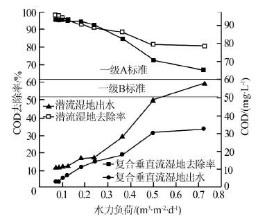 水力负荷对COD处理效果的影响如图 1所示。