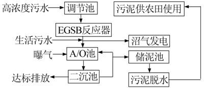 ÔÎÛË®´¦ÀíÕ¾ÎÛË®ÓÉÁ½²¿·Ö×é³É£¬Ò»²¿·ÖÊǸßŨ¶È·ÏË®£¬Ò»²¿·ÖÊÇÉú»îÎÛË®£¬¸ßŨ¶È·ÏË®Óɸ÷Éú²úµ¥Î»µÄÉú²ú·ÏË®×é³É£¬¸ßŨ¶È·ÏË®¾¹ýµ÷½Ú³Øµ÷½Úºó½øÈëEGSB·´Ó¦Æ÷½øÐÐÑáÑõ´¦Àí£¬¾¹ýEGSB·´Ó¦Æ÷µÄ³öË®ÓëÉú»îÎÛË®¹²Í¬½øÈëA/OÉúÎï·´Ó¦³Ø½øÐкÃÑõ´¦Àí£¬A/O³Ø³öË®½øÈë¶þ³Á³Ø£¬¶þ³Á³Ø³öˮֱ½ÓÅÅ·Å£¬¾ßÌåÎÛË®¼°ÎÛÄà´¦Àí¹¤ÒÕÁ÷³ÌÈçͼ 1¡£