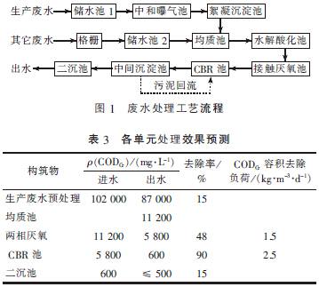 ͨ¹ý¼¼Êõ¾¼Ã·ÖÎö£¬È·¶¨²ÉÓÃÔ¤´¦Àí£Ë®½âËữ£½Ó´¥ÑáÑõ£CBR ×éºÏ¹¤ÒÕ½øÐд¦Àí¡£¹¤ÒÕÁ÷³ÌÈçͼ1 Ëùʾ£¬¸÷µ¥Ôª´¦ÀíЧ¹ûÔ¤²âÈç±í3 Ëùʾ¡£