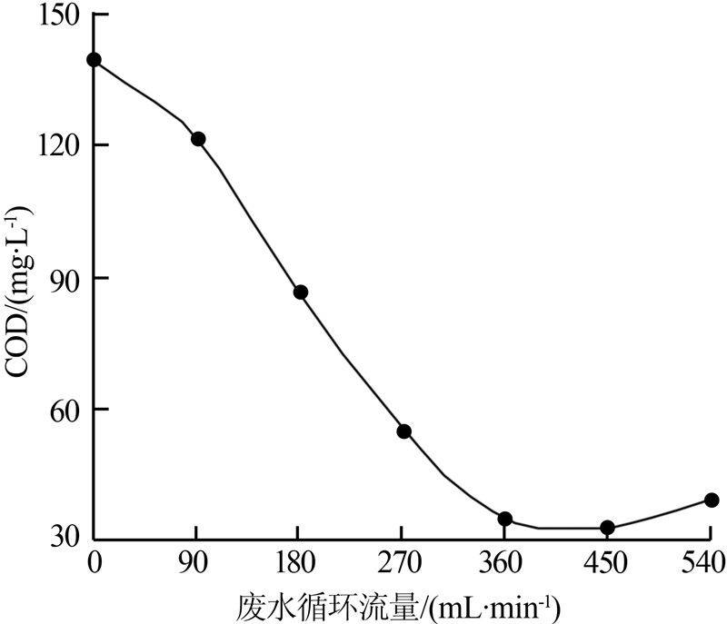 ×°Ìî15 cm»îÐÔÌ¿£¬È¥³ý·ÏË®¼î¶È£¬¿ªÆô³ôÑõ²¢ÖùÍâÑ»·£¬¿¼²ì·ÏË®ÖùÍâÑ»·Á÷Á¿¶ÔCODÈ¥³ýЧ¹ûµÄÓ°Ï죬½á¹û¼ûͼ 2¡£