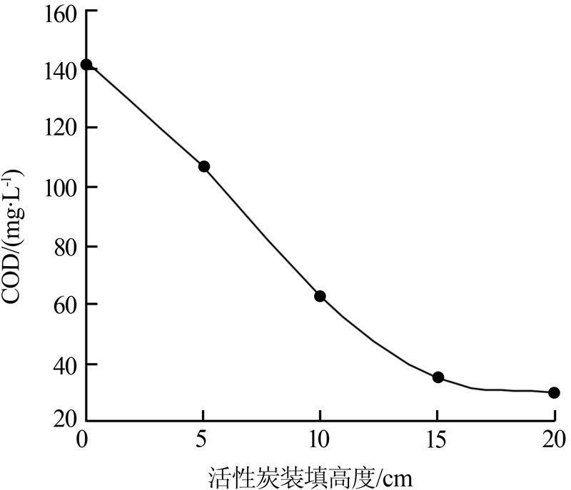 ÔÚÈ¥³ý¼î¶È+ÖùÍâÑ»·Ìõ¼þÏ£¬Ëæ×Å»îÐÔ̿װÌî¸ß¶È´Ó0Ôö¼Óµ½15 cm£¬³öË®CODÓÉ142 mg/L½µµ½35 mg/L£¬³ÊÏÖÃ÷ÏÔ½µµÍµÄÇ÷ÊÆ£¬¿É¼ûÔÚ·ÏË®ÖùÍâÑ»·ÒÔ±£Ö¤ÎïÁϺܺûìºÏµÄǰÌáÏ£¬»îÐÔÌ¿µÄ´ß»¯×÷ÓÃÄܹ»ÌåÏÖ³öÀ´¡£¼ÌÐøÔö¼Ó×°Ìî¸ß¶Èµ½20 cmʱ£¬³öË®COD½ö½µµ½30 mg/L£¬½µµÍÇ÷ÊÆÆ«»º¡£¿¼Âǵ½ÔËÐгɱ¾£¬»îÐÔ̿װÌî¸ß¶ÈÒÔ15 cmΪÒË¡£