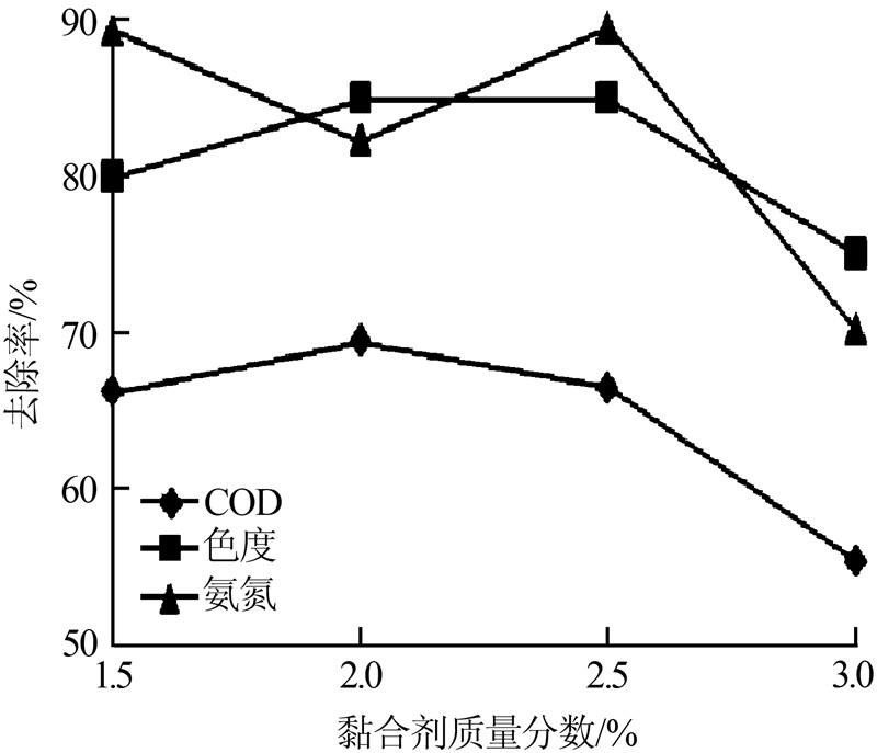 图 4 黏合剂含量对废水处理效果的影响