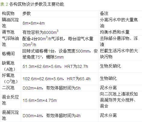 各构筑物的设计参数及主要功能见表 2。