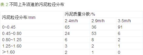 ÓÉͼ 5 ¿É¼û£¬Vup´Ó2.4 m/h Ôö¼Óµ½2.9 m/h ʱ£¬COD È¥³ýÂÊÓÉ50%Ìá¸ßµ½71%£»½«ÉÏÉýÁ÷ËÙ¼ÌÐøÌá¸ßµ½3.5 m/h ʱ£¬COD È¥³ýÂÊÓÉ71%Ôö¼Óµ½74%£¬µ«ºóÐøCOD È¥³ýÂÊ¿ªÊ¼Ï½µ£¬Ò»Ö±½µµ½42%¡£Õâ¿ÉÄÜÊÇÓÉÓÚVupΪ2.4 m/h ʱ£¬ÎÛÄàÖ÷Òª¼¯ÖÐÓÚ·´Ó¦Æ÷ÖÐϲ¿£¬ÄàË®¼ä´«ÖÊЧ¹û²î£¬ÎÛË®ÖеÄÓлúÎï²»Äܱ»ÓÐЧȥ³ý£»¶øÌá¸ßµ½3.5 m/h ʱÉÏÉýË®Á÷ÐγɽϴóµÄ¼ôÇÐÁ¦£¬¶Ô¿ÅÁ£ÎÛÄàÔì³ÉÒ»¶¨µÄÆÆ»µ£¬½µµÍÁË·´Ó¦Æ÷ÄÚµÄÎÛÄàÖÊÁ¿Å¨¶È£¬²»ÀûÓÚ·´Ó¦Æ÷µÄ³¤ÆÚÎȶ¨ÔËÐС²10¡³£¬Òò´ËVup¿ØÖÆÔÚ2.9 m/h ½ÏºÏÊÊ£¬¾ßÌåÎÛÄàÖÊÁ¿Å¨¶ÈºÍÁ£¾¶·Ö²¼¼û±í 1¡¢±í 2¡£
