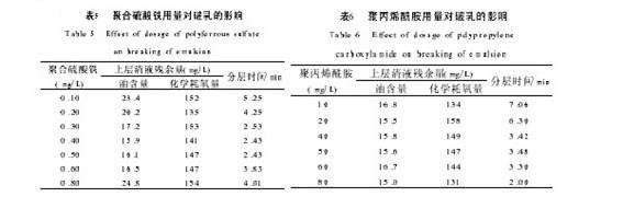 ¡¡¡¡ÔÚʵÑéÌõ¼þΪ:pHʼ=1.5,pHÖÕ=7.0,¾ÛºÏÁòËáÌúΪ0.40mg L,¿¼²ì¾Û±ûÏ©õ£°·ÓÃÁ¿¶ÔÆÆÈéµÄÓ°Ïì,½á¹û¼û±í6¡£