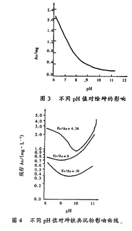 ¡¡¡¡·ÖÎö²»Í¬pHÖµÓëÌúÑι²³ÁÇúÏßͼ£¬µ±Fe/As£¾10ʱ£¬´¦Àí³öË®ÖеÄÉ飼0.5mg/L£¬ÔÚÉú²úÖУ¬¶Ô²»Í¬µÄº¬ÉéËáÐÔË®°´ÉÏÊö¿ØÖƲÎÊý¼°·´Ó¦Ìõ¼þ½øÐе÷Õû£¬¶¼È¡µÃÁ˽ϺõĴ¦ÀíЧ¹û¡£