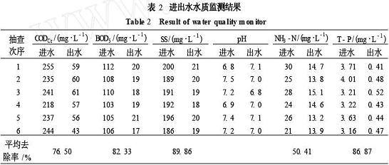 工程运行期抽查了部分运行参数,见表2。通过多次监测,其出水水质达到了( GB8978- 1996)一级排放标准。