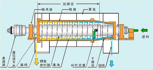 ![]() 离心式污泥脱水及结构示意图 |