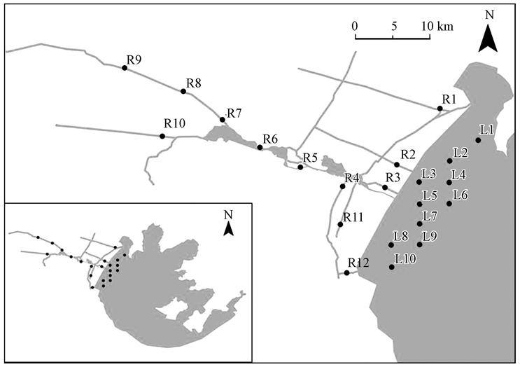 图2 河湖无机氮浓度(图中R为河水样、L为湖水样)