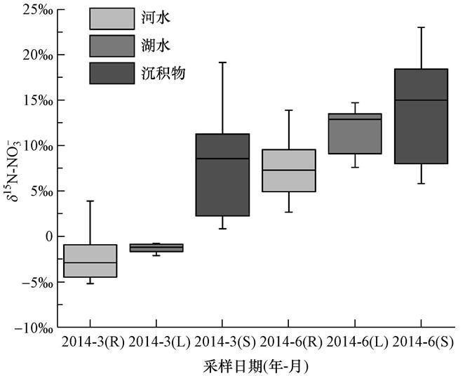 由图 5各水体与沉积物δ15N-NO3-统计特征分析可知,3月与6月西部湖区上覆水中δ15N-NO3-均高于河流水体,低于沉积物,因而推测湖区上覆水体中的硝化作用与沉积物中的反硝化作用是持续的.