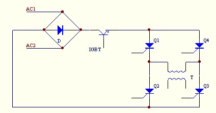 中型臭氧发生器的控制系统是一个“交流—直流—交流”的过程,它利用二极管整流,整流后经过电流电压的调整,再通过可控硅逆变,最后升压供给臭氧放电室。系统主电路图如下所示: