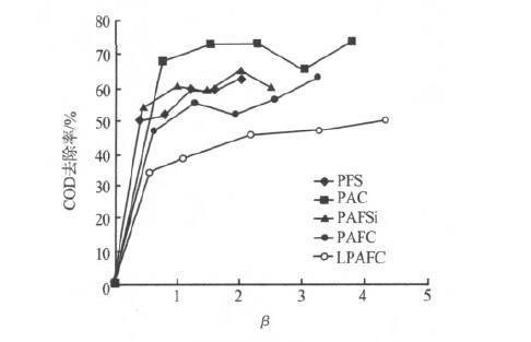 ²»Í¬¦ÂÏÂ5ÖÖ»ìÄý¼Á¶ÔCODµÄÈ¥³ýÂʼûͼ2¡£
