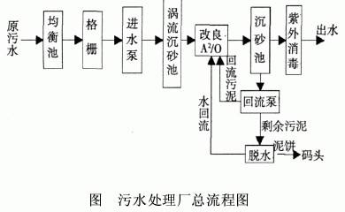 ¸ÃÎÛË®³§´¦Àí¹¤ÒÕ¼ûÏÂͼ,Ö÷ҪΪ¸ÄÁ¼A2/O¹¤ÒÕ¡£ÎÛË®±»±Ã´òÈë¾ùºâ³ØºóÏȾ¹ý¸ñÕ¤,È¥³ýÎÛË®ÖпÅÁ£Ö±¾¶´óÓÚ5mmµÄÐü¸¡Îï,·ÀÖ¹¶ÂÈûºóÐøµ¥ÔªµÄ»úÆ÷¡¢Ë®±Ã»ò¹¤ÒÕ¹ÜÏß¡£ÔÙ±ÃÈëÎÐÁ÷³Áɰ³Ø,ÎÐÁ÷ʽ³Áɰ³ØÎªÔ²Ðνṹ,ÎÛË®´ÓÇÐÏß·½Ïò½øÈë³ØÖÐ,½øË®ÇþµÀµÄÄ©¶ËÉèÓÐÏòÏÂÇãбµÄбÆÂ,ÓëË®Á÷µÄÇÐÏß·½Ïò±£³ÖÒ»ÖÂ,ÔÚ³ØÄÚ²úÉúÁËÂÝÐý×´µÄ»·ÐÐË®Á÷¡£ÔÚÖØÁ¦¼°ÀëÐÄÁ¦µÄ×÷ÓÃÏÂ,ɰ×Ó³ÁÈë³Øµ×µÄ¼¯É°¿ÓÖÐ,¶ø±ÈÖØ½ÏÇáµÄÓлúÎïÔòÔÚÒ¶ÂÖÓëË®Á÷Ë«ÖØ×÷ÓÃÏÂÓëɰ·ÖÀë,Éϸ¡µ½³Áɰ³Ø±íÃæËæË®Á÷Á÷³ö¡£ÎÛË®¾¹ýÎïÀí´¦Àíºó,½øÈëºËÐĵÄÉúÎï·´Ó¦³Ø,²ÉÓøÄÁ¼µÄA2/O¹¤ÒÕ,ÀûÓÃÉúÎï½µ½âË®ÌåÓлúÎÛȾÎï²¢³ýÁ×Íѵª¡£×îºó,ÔÚ¶þ³Á³ØÖÐ,ÀûÓÃÖØÁ¦µÄ×÷ÓÃʹ»îÐÔÎÛÄàÓë´¦ÀíºóµÄÎÛË®·ÖÀë,²¢Ê¹ÎÛÄàµÃµ½Ò»¶¨µÄŨËõ,³ØÌå²ÉÓÃÖнøÖܳö·ùÁ÷ʽ¶þ³Á³Ø¡£´ËÍâ,²ÉÓÃ×ÏÍâÏû¶¾ÏµÍ³¶Ô´¦ÀíË®½øÐÐÏû¶¾,ɱÃðÆäÖеIJ¡¾úºÍ²¡¶¾¡£¾Ïû¶¾ºóµÄ´¦ÀíË®ÅÅÈëºÓÖС£