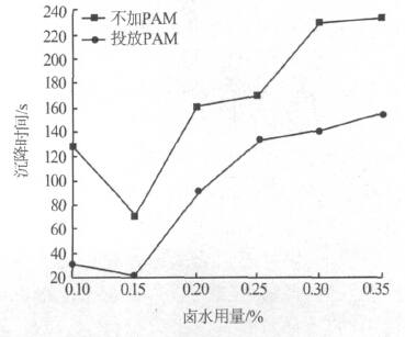 2.2.1 卤水用量对沉降时间的影响