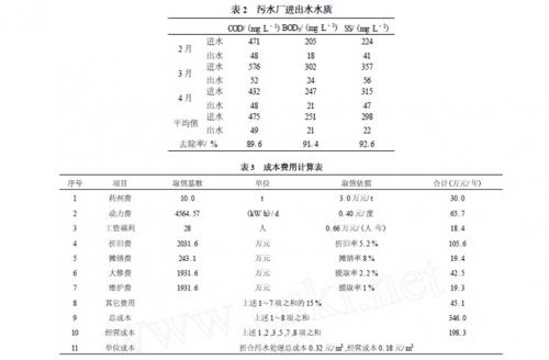 2002 Äê4 ÔÂ,ÎÛË®³§Í¨¹ýÁËÊн¨Î¯ºÍ»·±£¾Ö×éÖ¯µÄ¹¤³ÌÑéÊÕ,ÔÚÎÛˮζÈΪ8¡«15 ¡æ,½øË®COD¡¢BOD5 ºÍSS ·Ö±ðΪ475.49¡¢251.69 ºÍ298.67 mg/ L µÄÇé¿öÏÂ,³öˮˮÖÊ·Ö±ðΪ49. 68¡¢21. 62 ºÍ22 mg/ L ,ÎÛȾÎïÈ¥³ýÂÊ·Ö±ð´ïµ½ÁË89.6 %¡¢91.4 %ºÍ92.6 %,³öˮˮÖÊÎȶ¨ÇÒÈ«²¿´ïµ½»òÓÅÓÚ¹ú¼Ò¡¶ÎÛË®×ÛºÏÅŷűê×¼¡·(GB 8978 ¡ª1996) ÖеĶþ¼¶±ê×¼ÒªÇó,¼û±í2.´Óʵ¼ùÉÏ˵Ã÷Á˶þ¶Î·¨¹¤ÒÕ´¦ÀíµÍÎÂÎÛË®µÄ¿ÉÐÐÐÔ.