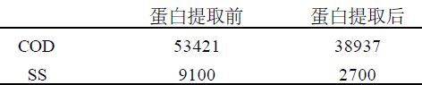 该过程以烯酸钠为絮凝剂,味精废水温度需控制在50 ℃左右,通过气浮法提取水中蛋白,每80t 废水可提干蛋白1t 左右,使废水的污染负荷大大降低。COD可降低30 %~40 % ,SS 降低70 %~80 % ,提取的蛋白营养丰富,可作为饲料,干蛋白市场售价1800~2000元/ t ,经济效益非常可观。以某公司的废水为例,处理效果见表2 :