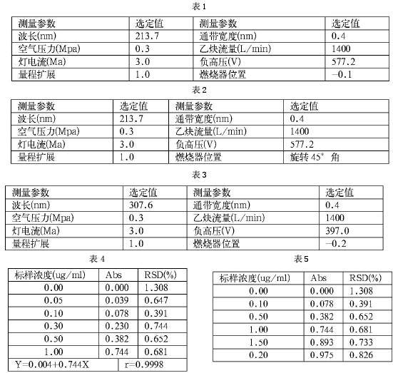 (1)ÒÆÈ¡10ug/mLµÄп±ê׼ʹÓÃÒº0¡¢0.5mL¡¢1mL¡¢3mL¡¢5mL¡¢10mLÓÚ100mLÈÝÁ¿Æ¿ÖÐ,ÓÃÈ¥Àë×ÓˮϡÊÍÖÁ¿Ì¶È,´ËϵÁÐÈÜҺŨ¶ÈΪ0¡¢0.05ug/mL¡¢0.1ug/mL¡¢0.3ug/mL¡¢0.5ug/mL¡¢1ug/mL¡£(ÇúÏß1±ê׼ϵÁÐ)