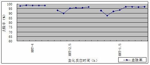 从图1可以看出有效水力停留时间1.5h时,NH3-N去除率仍能稳定在95%以上。