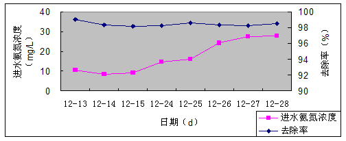 图2进水氨氮浓度与氨氮去除率关系变化曲线图