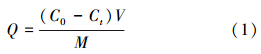 ¡¡¡¡Ê½ÖУ¬C0Ϊ²ñÓ͵ijõʼŨ¶È(mg ¡¤ L-1)£¬CtΪ·´Ó¦Ê±¼äΪtʱÈÜÒºÖвÐÓàµÄ²ñÓÍŨ¶È(mg ¡¤ L-1)£¬VÊÇÈÜÒºÌå»ý(L)£¬MÊǸÄÐÔÖñÌ¿¿ÅÁ£µÄÖÊÁ¿(g).
