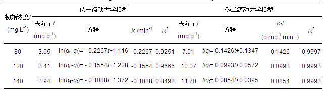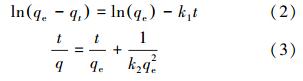 ¡¡¡¡Ê½ÖУ¬qtÊÇtʱ²ñÓ͵ÄÈ¥³ýÁ¿(mg ¡¤ g-1)£¬qeÊÇÆ½ºâʱµÄ²ñÓÍÈ¥³ýÁ¿(mg ¡¤ g-1)£¬k1ÊÇαһ¼¶¶¯Á¦Ñ§ËÙÂʳ£Êý(min-1)£¬k2ÊÇα¶þ¼¶¶¯Á¦Ñ§ËÙÂʳ£Êý(g ¡¤ mg-1 ¡¤ min-1)£¬qe¡¢k1ºÍk2Öµ¶¼¿ÉÒÔͨ¹ýqtºÍtµÄͼ±í¹ØÏµ»ñµÃ.