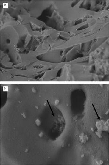 ¡¡¡¡¹Ì¶¨Ç°ºóµÄ¸ÄÐÔÖñÌ¿±íÃæµÄSEM½á¹ûÈçͼ 3Ëùʾ. ´Óͼ 3a¿ÉÖª£¬Ôڹ̶¨»¯Ö®Ç°£¬¸ÄÐÔÖñÌ¿±íÃæ»ý½Ï´ó£¬ÇÒ°¼Í¹²»Æ½£¬·Ö²¼×Å´óС²»Ò»µÄ΢¿×. ÕâÖÖ΢¿×½á¹¹Äܹ»±£Ö¤ÑõÆø¡¢ÓªÑøÔªËصÄÊäËͼ°½µ½âµ×ÎïµÄÅÅ·Å. Õâ³ä·Ö˵Ã÷¸ÄÐÔÖñÌ¿ÊÇ΢ÉúÎï¹Ì¶¨»¯µÄÀíÏëÔØÌ壬ÆäËù¾ßÓжà¿×½á¹¹Äܹ»ÎªÎ¢ÉúÎïÌṩ×ã¹»µÄÉú³¤¿Õ¼ä. ´ËÍ⣬΢¿×½á¹¹Ò²¿ÉΪÎÛȾÎïÌṩ½øÈëÔØÌåÄÚ²¿µÄͨµÀ(Wang et al., 2012). ´Óͼ 3b¿É¼û£¬ÔÚ¿××´½á¹¹ÖÐÓÐ΢ÉúÎïÉú³¤£¬ÇÒ·Ö²¼ÔÚ¸ÄÐÔÖñÌ¿ÔØÌåÉϵľúÂäÐÎ̬²¢²»ÍêȫһÖ£¬ÓÐЩϸ¾úÍÅ´ØÔÚÒ»Æð£¬ÓÐЩÔò´¦ÓÚ·Öɢ״̬. ÓÉ´Ë˵Ã÷£¬ÖñÌ¿¹Ì¶¨Ï¸¾ú¿ÉÄÜ´æÔÚÁ½ÖÖ;¾¶£¬°üÀ¨¾úÌå¼äµÄÎïÀíÎü¸½¼°Ï¸¾úÓëÔØÌå¼äµÄ½»Áª×÷ÓÃ(Qiao et al., 2010).