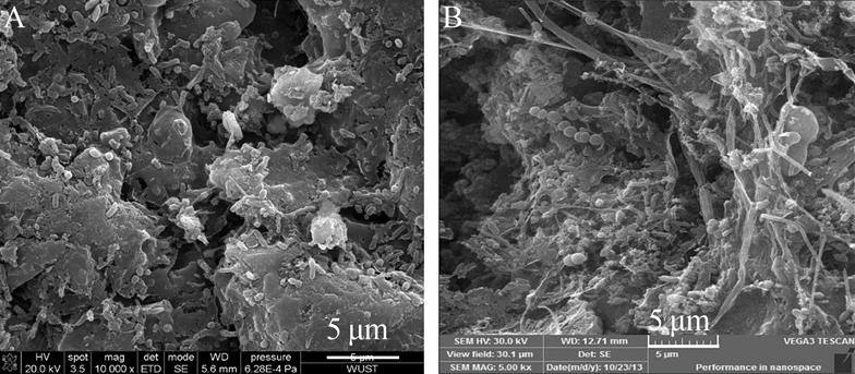 ¡¡¡¡Í¨¹ý¿¼²ìÉúÎï»îÐÔÌ¿µÄɨÃèµç¾µ½á¹û·¢ÏÖ:ÎÞÂÛÊÇÔËÐгõÆÚ»¹ÊǺóÆÚ,ÔÚ»îÐÔÌ¿µÄ±íÃæ,¶¼ÓÐÃ÷ÏÔµÄ΢ÉúÎ︽×Å,˵Ã÷ÔÚÖÐÊÔÊÔÑé¹ý³ÌÖÐ,»îÐÔÌ¿±íÃæÉÏ΢ÉúÎïµÄÉú³¤Çé¿öÁ¼ºÃ¡£Ëæ×ÅÔËÐÐʱ¼äµÄÔö¼Ó,΢ÉúÎïÖ®¼äͨ¹ýг´úлµÄ·ÖÃÚÎïÁ¬½ÓÔÚÁËÒ»Æð,ÐγÉÁ˰ûÍâÁ¬Ë¿,ÕâÖֽṹ¸ü¼ÓÎȹÌ,΢ÉúÎï²»Ò×Á÷ʧ,¸üÓÐÀûÓÚ¸ßЧ¾ú·¢»ÓÎȶ¨µÄÉúÎï½µ½â×÷ÓᣴӸßЧ¾úµÄÉú³¤×´¿ö±È½Ï,»îÐÔÌ¿ÊǸßЧ¾ú±È½ÏÀíÏëµÄ·±Ö³¡¢¸½×ų¡Ëù¡£