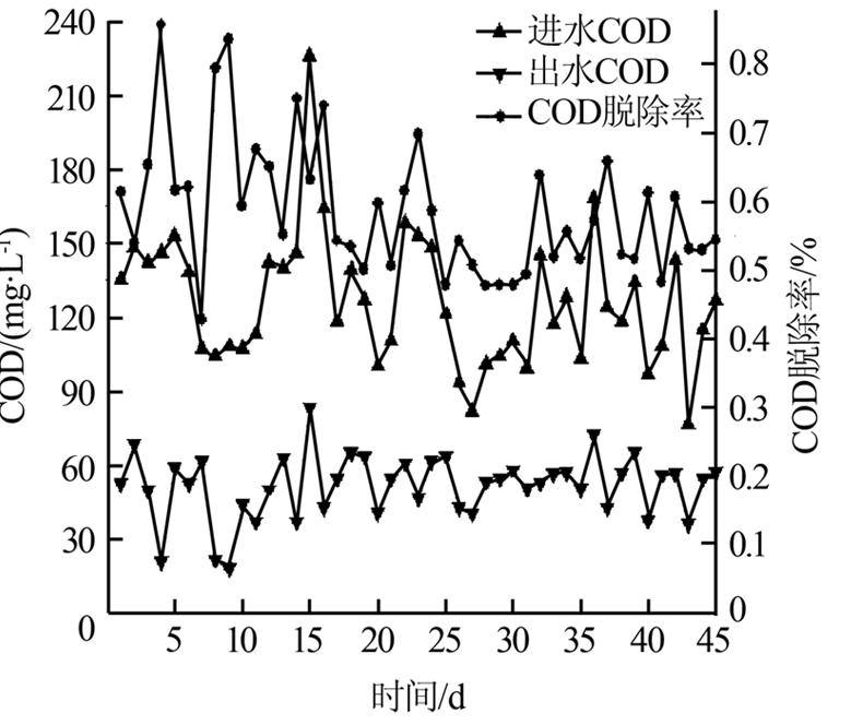 ¡¡¡¡(2)³öË®µÄƽ¾ùCODСÓÚ60 mg/L,ƽ¾ùÍѳýÂÊ´óÓÚ50%,³öË®COD»ù±¾´ïµ½¹ú¼ÒÔÙÉúË®µÄË®ÖÊÒªÇó¡£³öË®UV254µÄƽ¾ùÖµÔÚ0.25 cm-1ÒÔÏÂ,ƽ¾ùÍѳýÂÊ´óÓÚ70%,CODÍѳýÂʵı仯ºÍζȵı仯Ç÷ÊÆ»ù±¾Ò»ÖÂ,Á÷Á¿¶ÔCODÍѳýÂʵÄÓ°ÏìºÜ´ó¡£