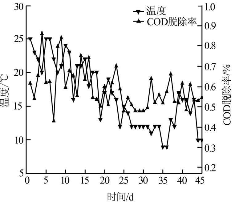 ¡¡¡¡ÔÚÖÐÊÔÊÔÑé¹ý³ÌÖÐ,ζÈΪµ±Ìì°×ÌìÊÔÑéµÄƽ¾ùÆøÎÂ,ζȶÔCODÍѳýÂʵÄÓ°ÏìÈçͼ 7Ëùʾ¡£