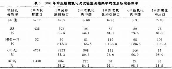 Ï𽺷ÏË®´¦Àí (2)¼à¼ì½á¹û£ºÎ÷Ë«°æÄÉÖÝ»·¾³¼à²âÕ¾ÓÚ2000Äê11ÔÂ17¡«19ÈÕ½øÐÐÁËÁ¬ÐøÈýÌìµÄ¿¢¹¤ÑéÊÕ¼à²â£¬½á¹û¼û±í2¡£2001ÄêÔÚÀûÓÃË®ÉúÖ²ÎïÖÎÀíÏ𽺷ÏË®µÄÊÔÑéÖУ¬ÓÖ¶ÔÑõ»¯¹µ·Ö¶Î½øÐÐÁË·ÖÎö£¬²¢·Ö±ðÈ¡Ñù£¬Í¨¹ýËÍÑù½øÐмì²â·ÖÎö£¬Æä¼ì²â½á¹ûƽ¾ùÖµ¼°¸÷¶Î¶ÔÎÛȾÎïµÄÈ¥³ýÂʼû±í3¡£