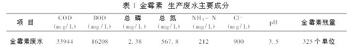 1.1废水水质试验用金霉素生产废水取自福建浦城生化厂,冷藏备用。主要成份见表1。