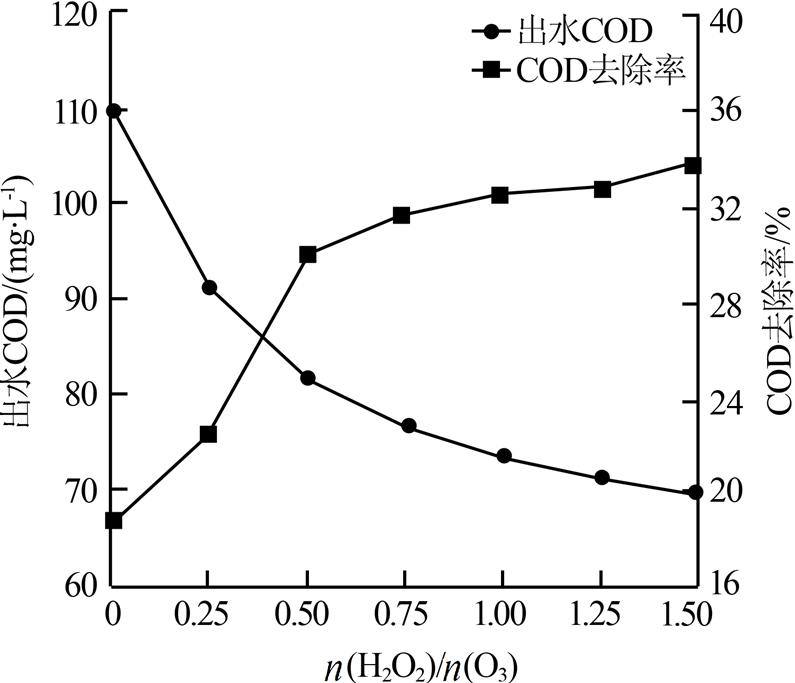 ͼ 4 n£¨H2O2£©/n£¨O3£©¶ÔCODÈ¥³ýÂʵÄÓ°Ïì