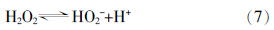¡¡¡¡Í¬Ê±£¬H2O2×ÔÉí·¢Éú½âÀë·´Ó¦Éú³ÉHO2-£º